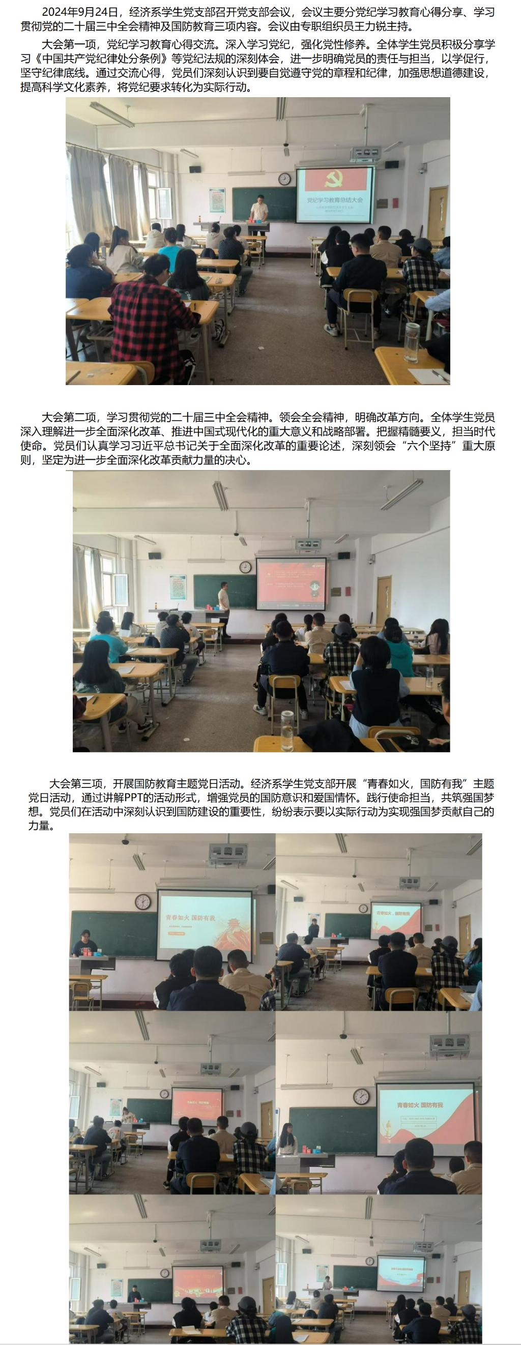 经济系学生党支部召开新学期第一次党员大会