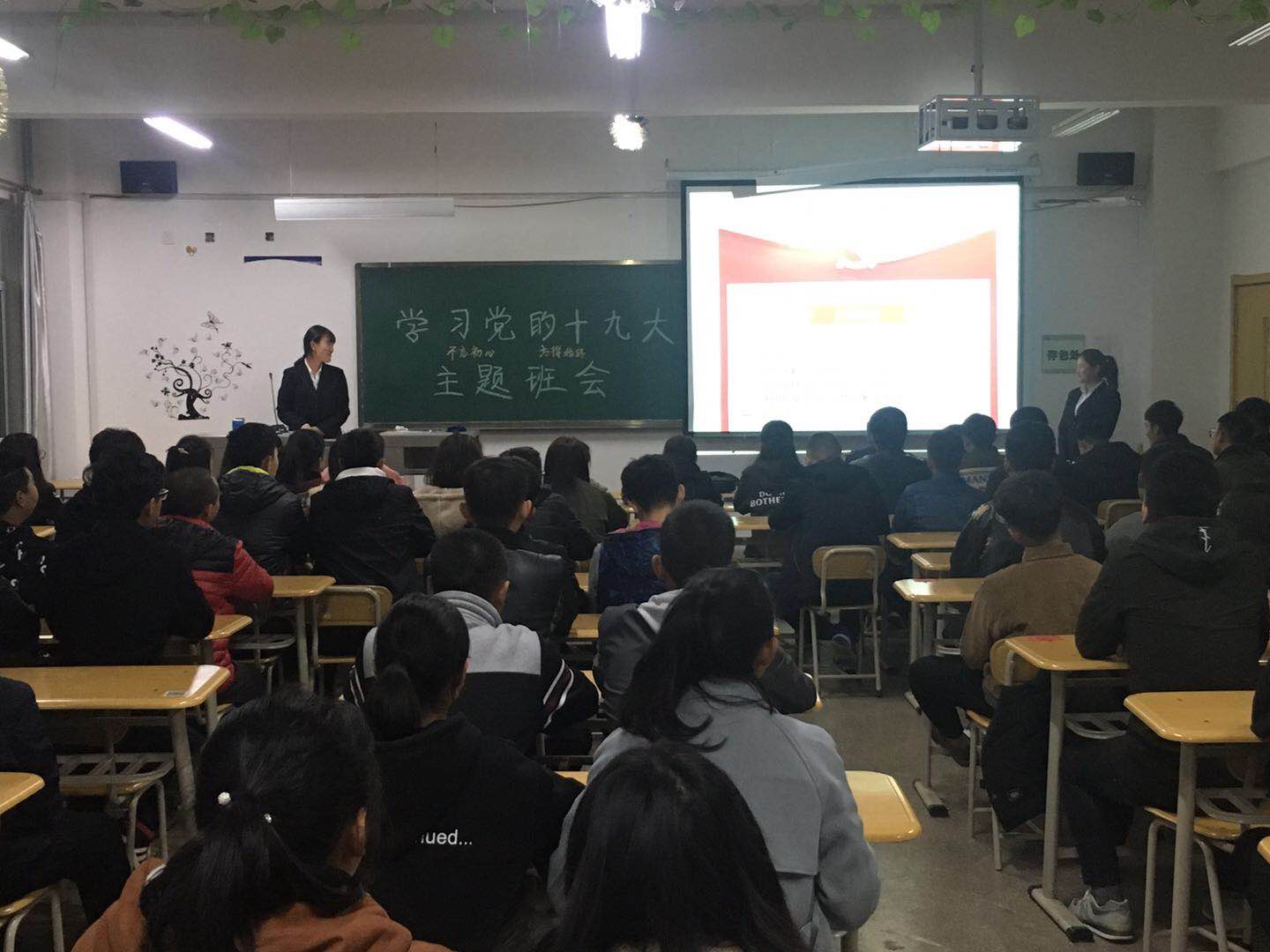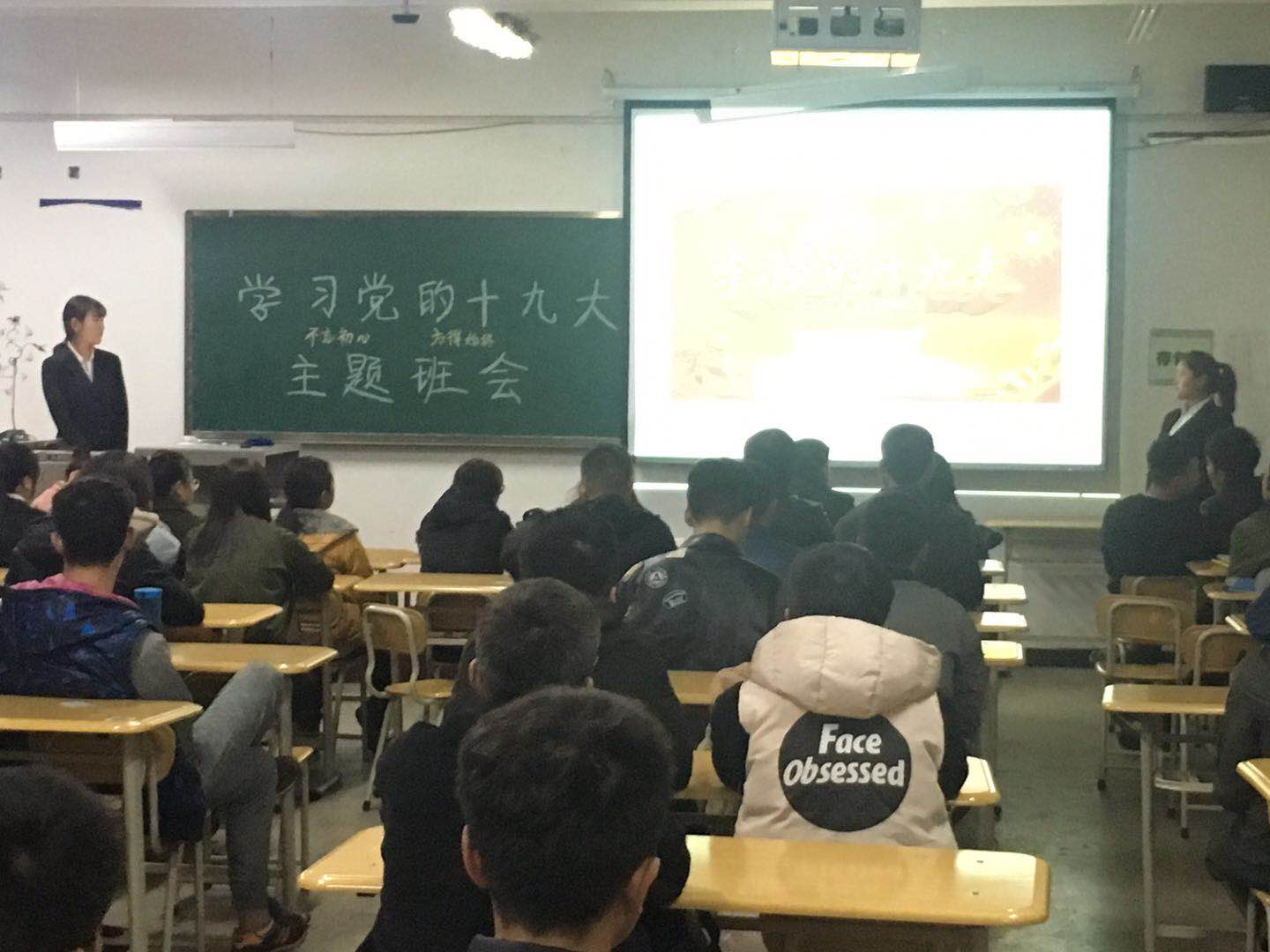 党的十九大是在全面建成小康社会决胜阶段中国特色社会主义进入新时代的关键时期召开的一次重要大会,在党和国家的发展进程中具有重要里程碑意义。学习宣传贯彻党的十九大精神是当前和今后一个时期的首要政治任务。班会通过介绍党的十九大精神和以宿舍为单位的党的十九大演讲活动,使每位同学都深刻认识到党的十九大精神的重要性,进一步了解了政治生活的各方面。