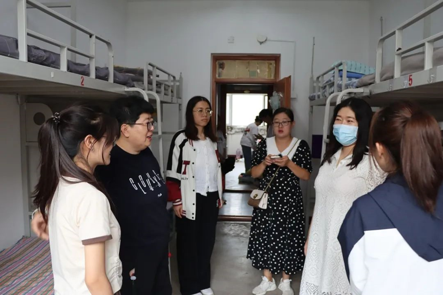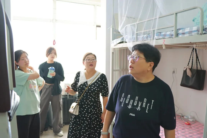 下午,计算机系党总支副书记闫斐和辅导员走进学生公寓,对同学们到来表示热烈欢迎,并且聆听同学们的心声,解决同学们的难题。