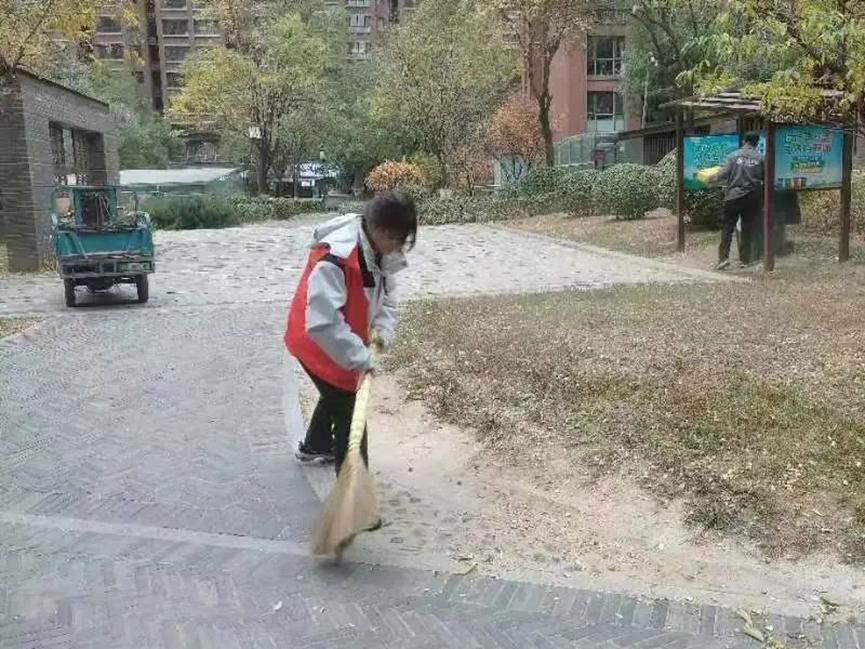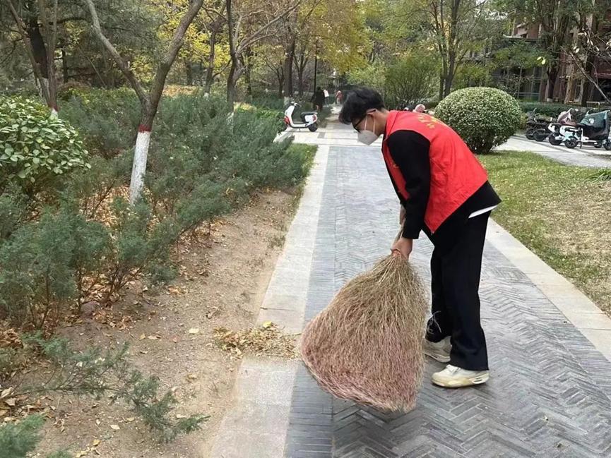 当天下午,志愿者们穿着红色志愿马甲,准时到达龙湖社区,分成三个小组,有条不紊地展开卫生大扫除活动。大家分工明确,积极参与,使用扫把、火钳和垃圾袋等工具清扫公共区域和绿化带的枯枝、落叶和垃圾。每个环节都认真细致,没有放过任何一个卫生死角。