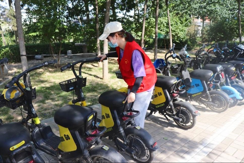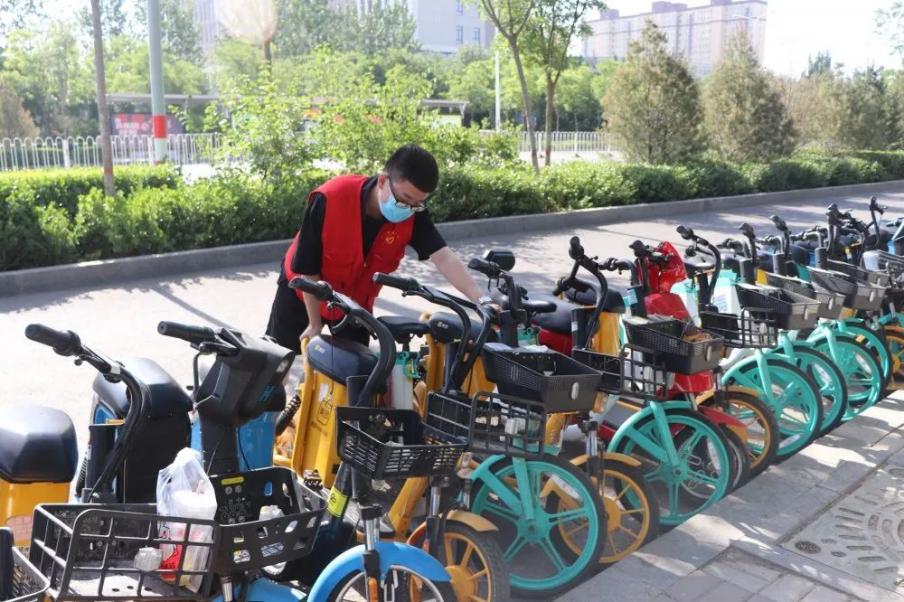 活动期间,有的将单车座椅擦拭干净,让使用者拥有更好的心情;有的将单车摆放整齐;有的将停车位和汽车周围的单车整理到指定位置,为车主腾出足够的移车位置;有的将单车框中的垃圾清理掉。