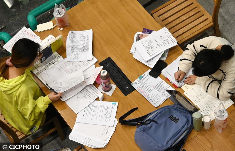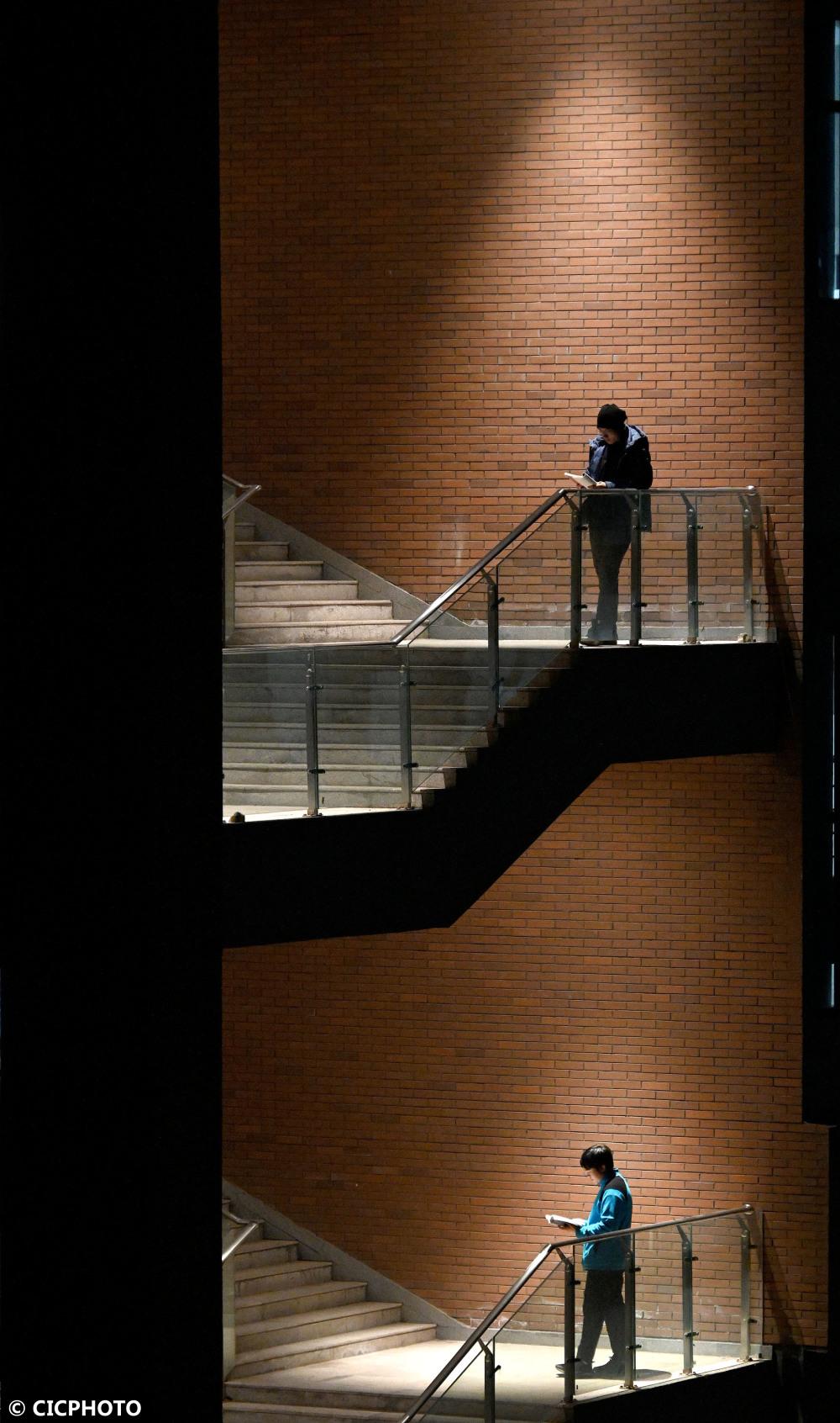2021年全国硕士研究生招生考试临近,在湖南省衡阳市南华大学,准备考研的学生忙着看书学习,抓紧时间复习备考。新华 社发(曹正平 摄)