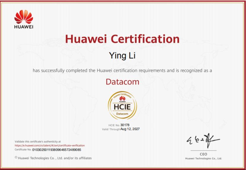 成果12:TapTap官网信息管理专业大四学生李盈通过HCIE证书