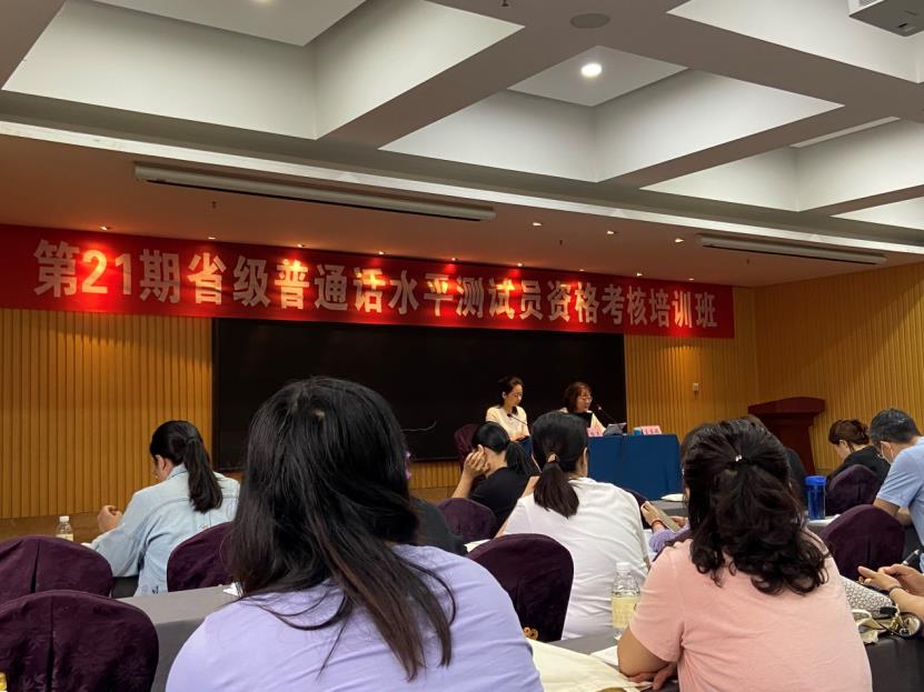 本次培训开设了语言文字法律法规、普通话水平测试概说、现代汉语语音基础、听测能力训练等多项课程,参训学员必须通过普通话水平等级测试、汉语拼音测验、听力测评能力三项考核才能获得省级普通话测试员资格证书。本次培训共99位来自各高校、单位的教师及语言文字工作者参加,最终考核通过率为85.86%,我院四位参训教师全部通过考核,取得了省级普通话水平测试员资格证书和国家普通话水平测试一级乙等证书。