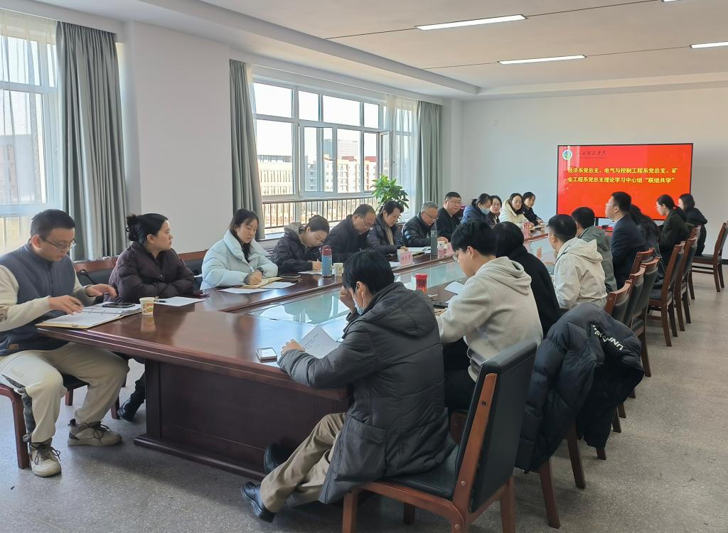 为深入学习贯彻党的二十届四中全会精神,推动理论学习与学科实践深度融合,凝聚协同发展合力,共同谋划学科赋能高质量发展路径,2025年11月19日上午10:00,矿业工程系党总支理论学习中心组联合经济系党总支理论学习中心组、电气与控制工程系党总支理论学习中心组在矿业工程系会议室开展联组共学会议。会议由矿业工程系党总支书记刘健主持,经济系党总支理论学习中心组成员、电气与控制工程系党总支理论学习中心组成员、矿业系党总支理论学习中心组成员参加学习。
