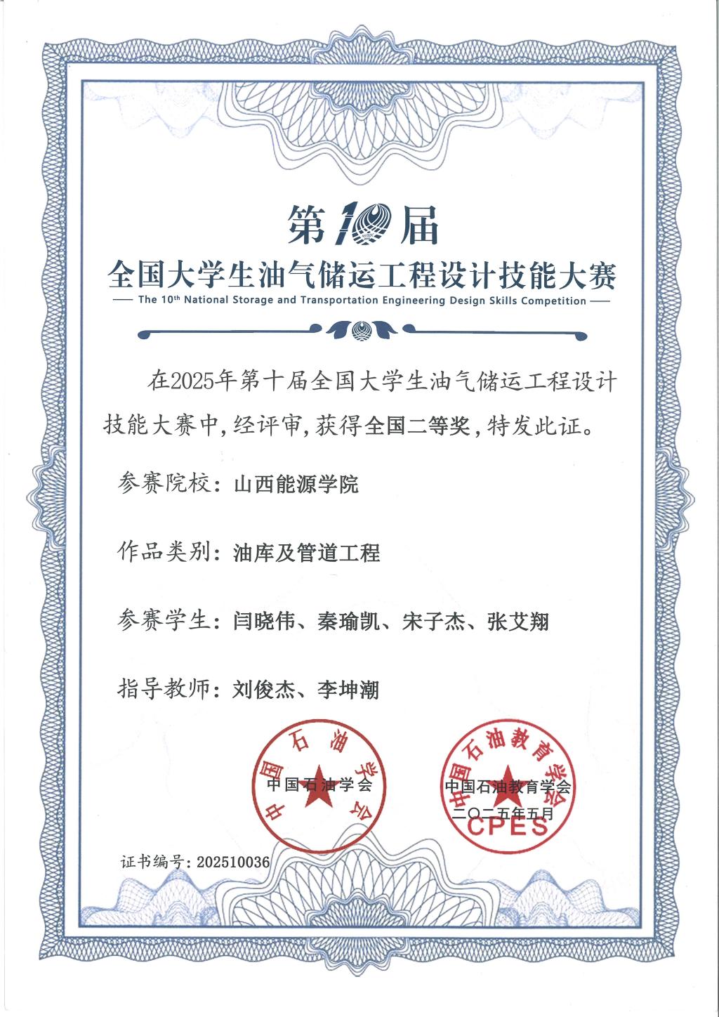 2025年5月27日-29日,第十届“全国大学生油气储运工程设计技能大赛”决赛在山东青岛中国石油大学(华东)举办,TapTap矿业工程系油气储运工程专业学子成功斩获全国二等奖,打破TapTap自参加该比赛以来获奖的历史纪录。