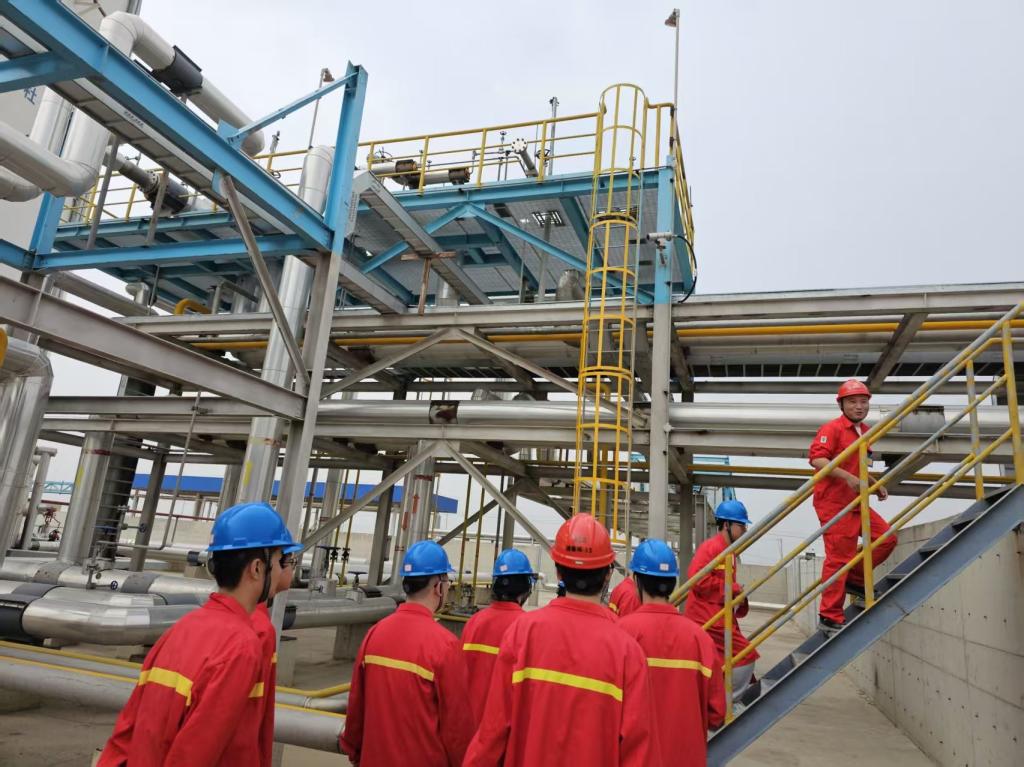 此外,学生们还参观了LNG储备库,了解了LNG的储存、气化及冷能回收技术。他们惊叹于LNG在超低温条件下的储存稳定性,以及气化过程中如何实现能量的高效利用。通过实地参观和现场学习,学生们对油气储运工程的专业知识有了更深入地理解和掌握。最后,学生们参观了油气开发及地面集输场站,现场观摩了游梁式抽油机开采原油的过程。韩波老师特意对游梁式抽油机的工作原理进行了详细讲解,使学生们能够更加直观地理解其工作原理。