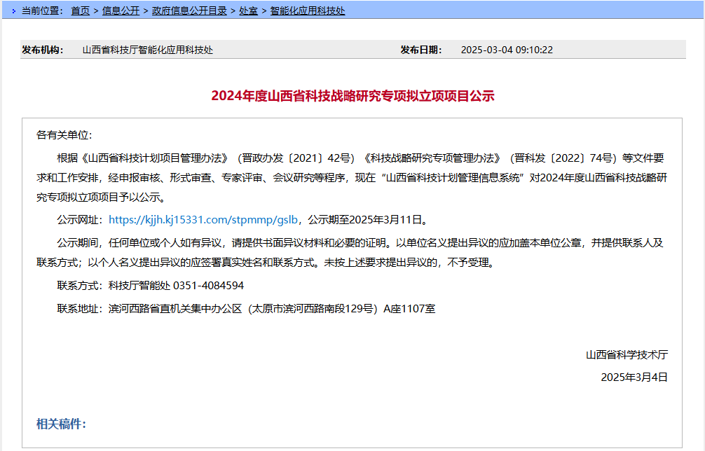 2024年度山西省科技战略研究专项立项项目