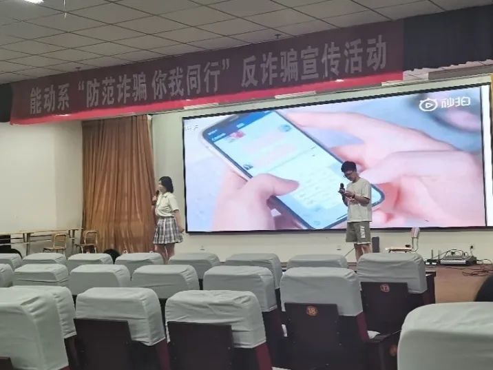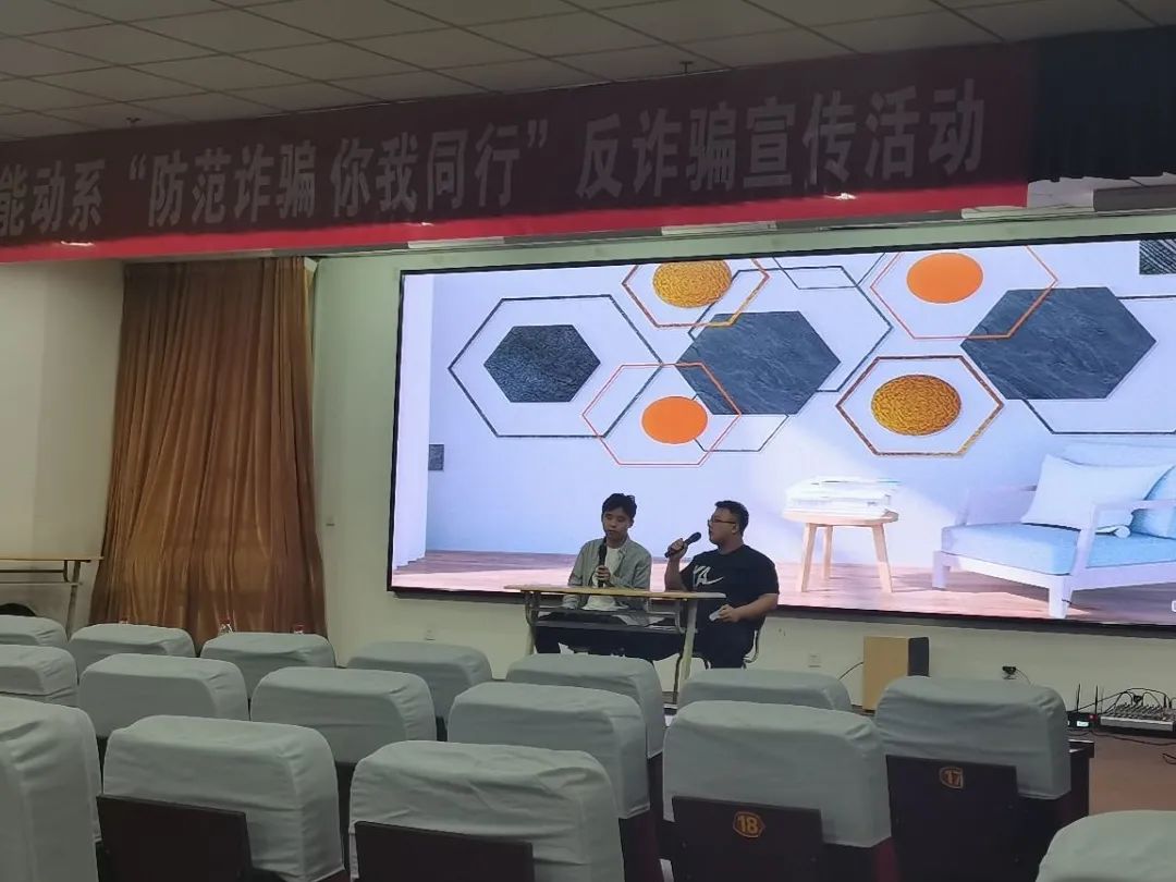 网络诈骗通常指为达到某种目的在网络上以各种形式向他人骗取财物的诈骗手段。犯罪的主要行为、环节发生在互联网上的,用虚构事实或者隐瞒真相的方法,骗取数额较大的公私财物的行为。为提高学生自我防范意识,了解诈骗形式,能够在遇到诈骗行为时采取适当的措施规避风险,在紧急情况下能够自救和互救,共同创造平安、和谐的校园。能源与动力工程系针对目前常见的几种骗术,结合发生在我们身边的真实案例,特此开展以“防范诈骗,你我同行”为主题的反诈骗宣传活动。