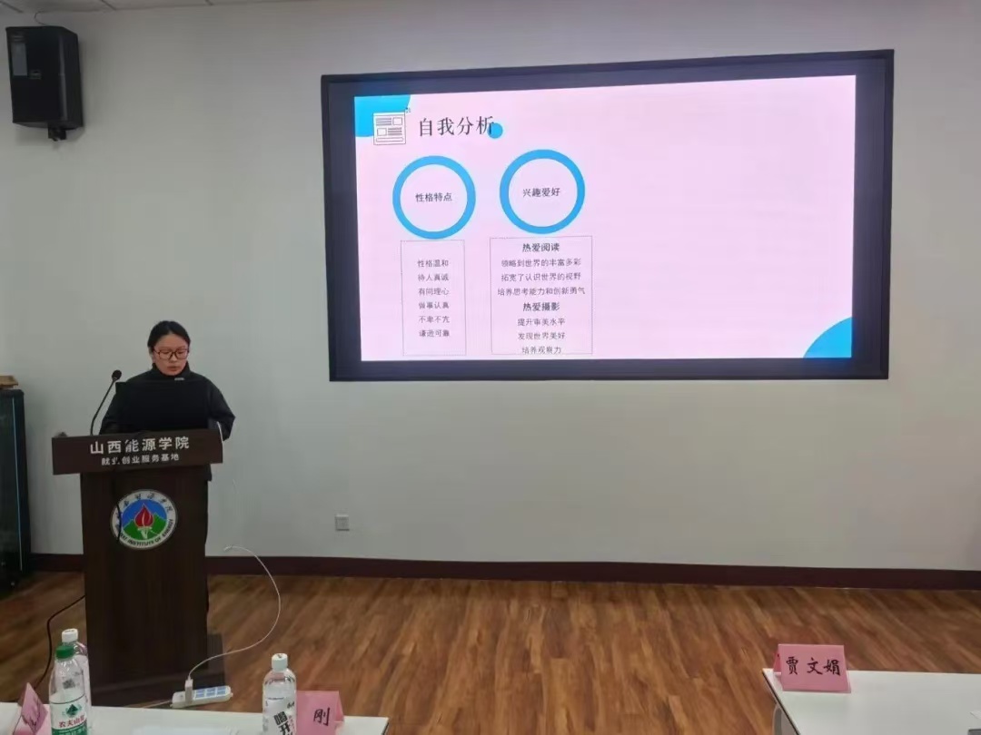 12月9日下午,能动系2024年职业规划大赛复赛在强能楼四层就业创业服务基地403室举行。本次比赛的评委有各教研室教师代表李彦荣老师、刘志刚老师、王兆熙老师,专职辅导员贾文娟老师、张豆豆老师、管雯瑞老师、高志超老师以及往届比赛优秀选手李昊晨同学。