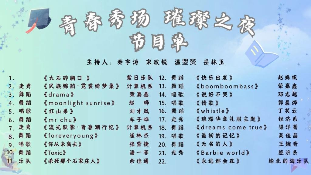 激情乐队燃唱,用音符点燃夏夜;潮流T台走秀,尽显青春风采;热辣舞蹈律动,挥洒热血时光。每一个节目,都将带我们重温校园的美好与感动。