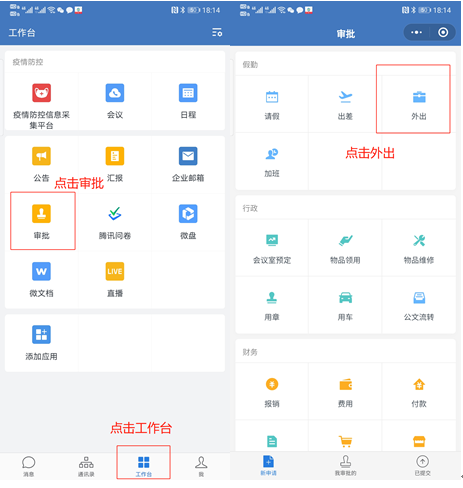 各位老师:为了确保疫情期间工作顺利开展,疫情期间确有需要外出的学生报审工作通过企业微信进行信息化审批,具体操作流程如下: