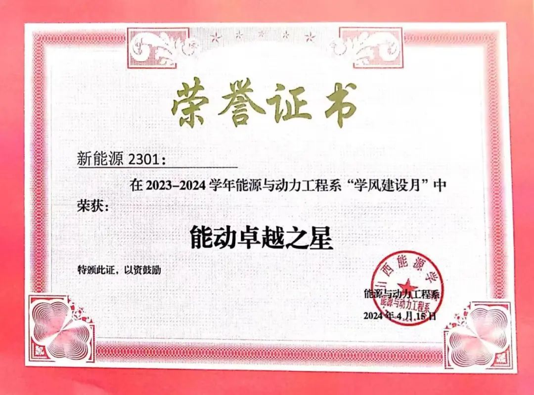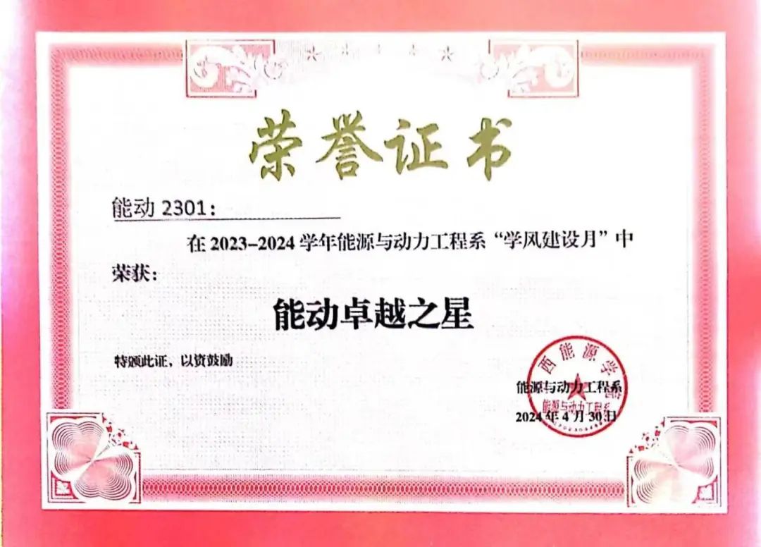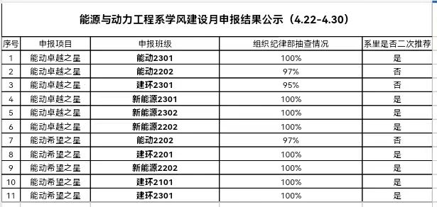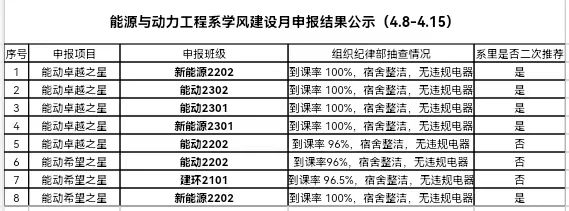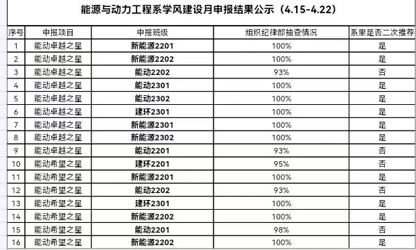 能源与动力工程系学风建设月申报结果公示