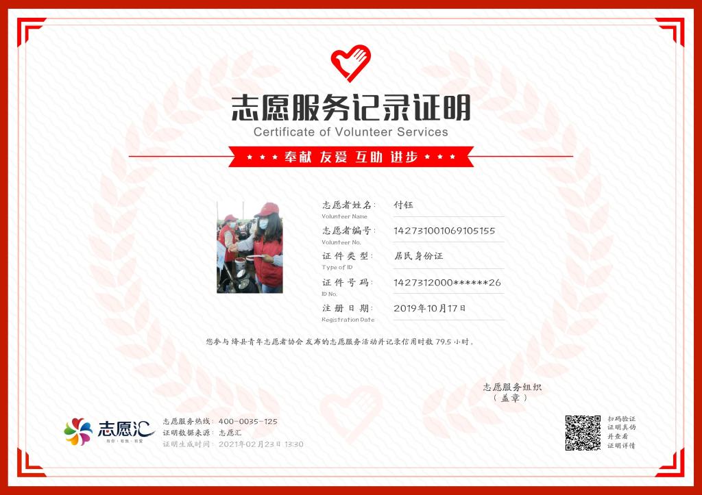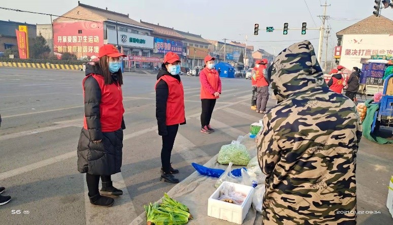1月20日绛县新增一例确诊病例,1月21日刚过了隔离期的付钰看到了绛县青年志愿者协会招募志愿者配合镇政府劝阻人员聚集活动,她毫不犹豫的报了名。十天的时间,付钰同学先后七次参加志愿服务活动,她身穿“红马甲”,积极参与,不断改进。她协助镇政府劝导老百姓不聚集,暂停集市,宣传疫情防控知识。在活动结束时,镇王书记还对她们的志愿服务给予了肯定:“有你们这些“红人”协助,让我们的工作开展更加顺利有序。”