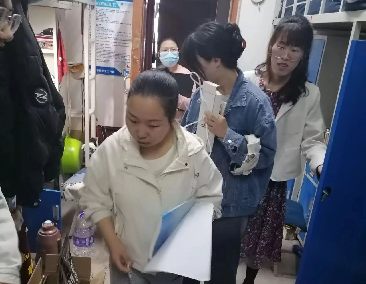 寝室生活是校园生活的核心,是大学生活的重要组成。为切实维护宿舍安全稳定,消除学生宿舍的安全隐患,确保学生人身、财产安全,营造安全、卫生的宿舍生活环境。2024年4月23日下午,能源与动力工程系成立宿舍检查工作组深入学生宿舍实地了解、检查宿舍安全及卫生情况。我系宿舍检查工作组以系党总支副书记杨刚、专职辅导员张豆豆和高志超、兼职辅导员李彦荣分别为组长,其他兼职辅导员为组员,学工部曹新萌老师跟组检查。
