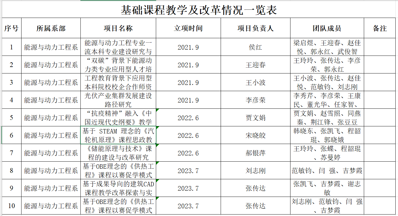 2021-2023教学改革项目汇总表
