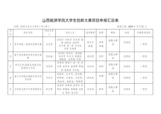 能动系2024年大学生创新大赛项目申报系赛结果公示: