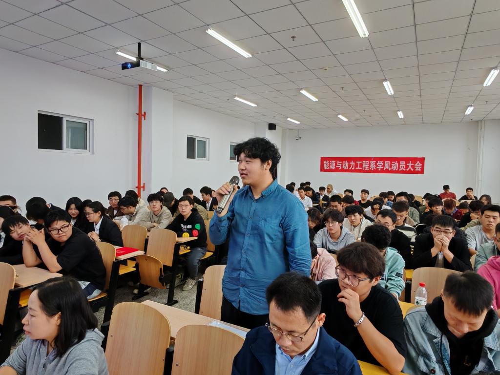 党总支副书记杨刚首先介绍了近年来能动系学生在就业、考研和创新创业等方面取得的成绩,提出了学风建设与大学生的学习生活密不可分,重点强调了学生在学风建设方面的重要性,鼓励同学们积极投身学风建设,共同创造优良的学风环境。