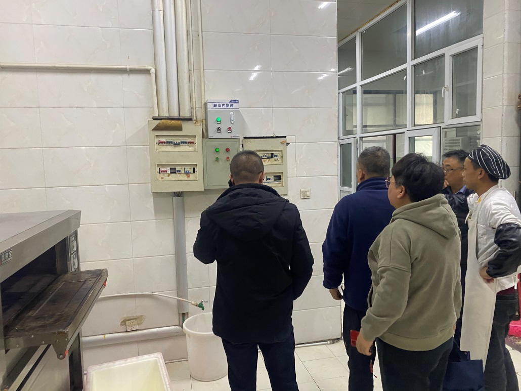 对学院学生食堂进行安全隐患排查,主要检查食品卫生安全问题,以及明厨亮灶、燃气报警系统、风机联动系统等消防安全问题。