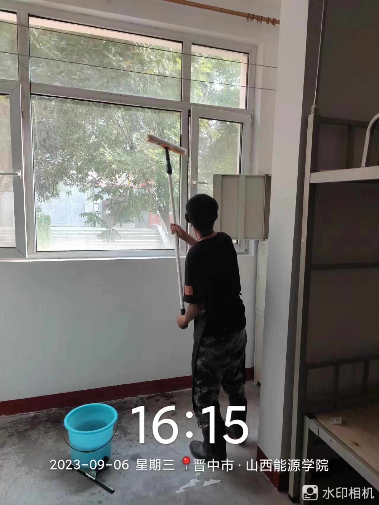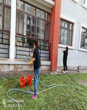 一、在新生开学前,后勤保障部积极组织物业人员对粉刷后的新生宿舍楼进行了精细化打扫。