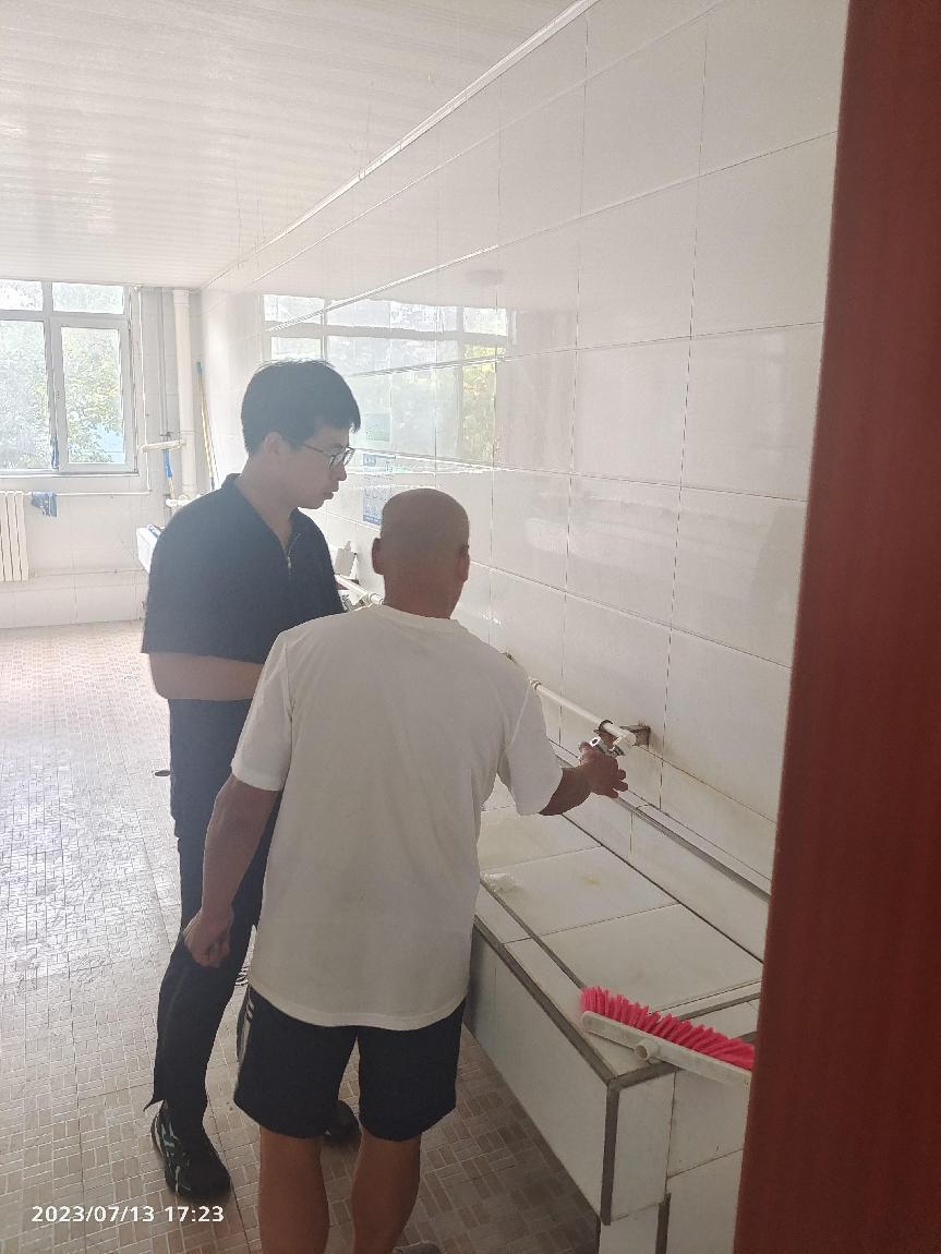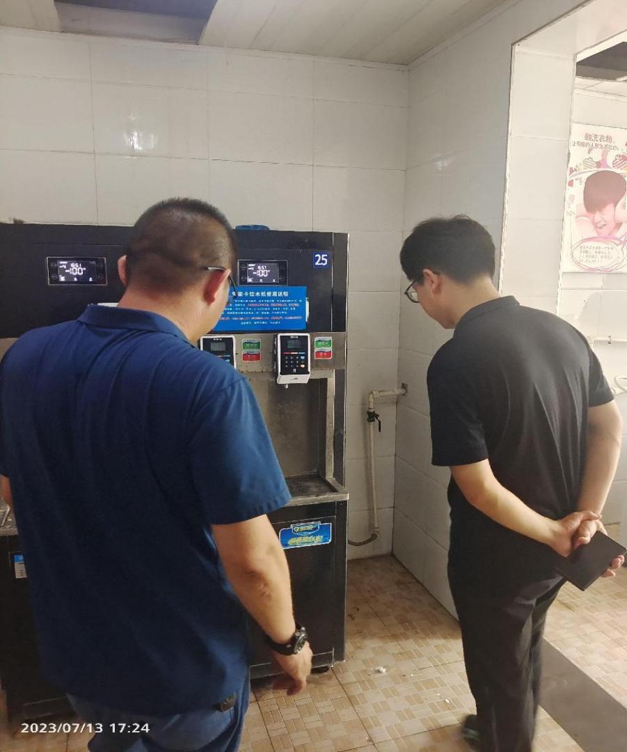 接下来,检查组分成两支队伍:一支队伍在后勤保障部工作人员的配合下查阅相关用水资料,另一支队伍在朱副部长和胡科长的陪同下实地检查了学院公寓、食堂、洗浴中心的用水设施和用水情况。在检查过程中,检查组提出一些意见建议,后勤部人员表示会及时整改完善。