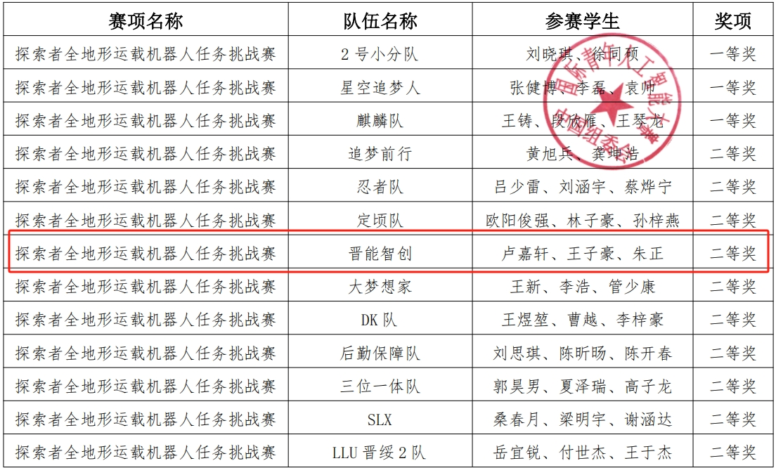 TapTap团队“晋能智创”在本次比赛探索者全地形运载机器人任务赛道中脱颖而出,荣获全国二等奖。