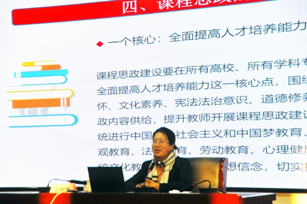 12月15日下午,刘振霞教授在综合楼二层报告厅以“学习党的十九届五中全会精神,承担思政课教师责任使命”为题为我院教职工作了一场精彩专题讲座。本次讲座由思政部负责人张东安主持,院长梁卫国出席,各系领导、中青年教师、全体思政课教师及辅导员参加学习。