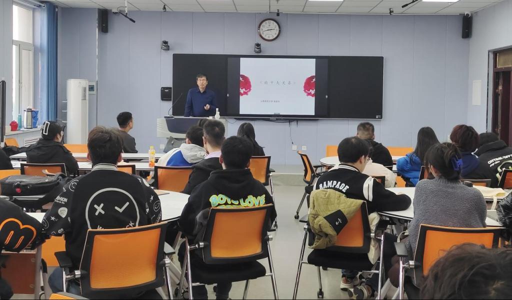 11月28日下午,科技产业部主办、思想政治理论课教学部承办的“能源大讲堂”系列学术讲座在综合楼306智慧教室举行山西师范大学马克思主义学院教授、博士生导师赵跃先应邀作了题为“红色经典分享:《论十大关系》解读”的学术讲座。讲座由思想政治理论课教学部赵雪照主任主持学院青马工程全体学员与思政课教师参加讲座。