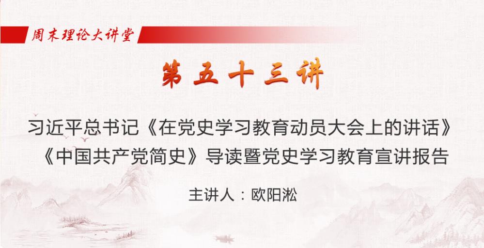 本次授课的主讲嘉宾是中国人民大学欧阳淞教授,进行习近平总书记《在党史学习教育动员大会上的讲话》《中国共产党简史》导读暨党史学习教育宣讲报告。
