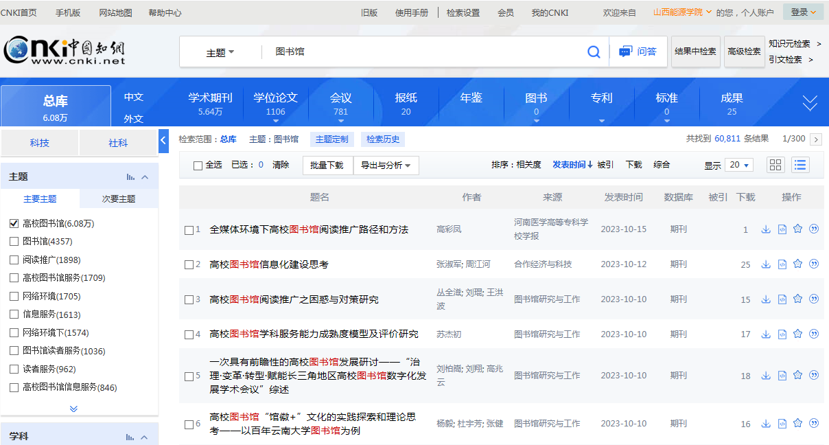 中国知网是中国知识基础设施工程的简称,英文缩写为CNKI(China National Knowledge Infrastructure)。中国知网作为知识服务平台,为师生提供学科基础文献保障,为学生毕业设计、论文撰写助力,保障教职工各项科研项目的申报和研究,为全院提供丰富的知识信息资源和有效的数字化学习平台。
