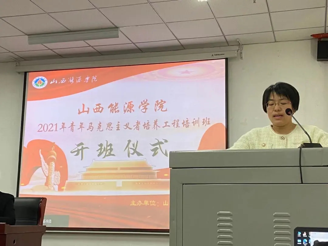 4月13日下午,我院2021年青年马克思主义者培养工程培训班开班仪式在综合楼一层东报告厅隆重举行。院党委副书记张春有、党委委员组织部部长韩树霞、党委委员学生工作部部长辛书贤、思政部负责人张东安及各系部分团委书记、本期培训班老师和全体培训班学员参加了开班仪式。本次开班仪式由院团委书记郑文靖主持。