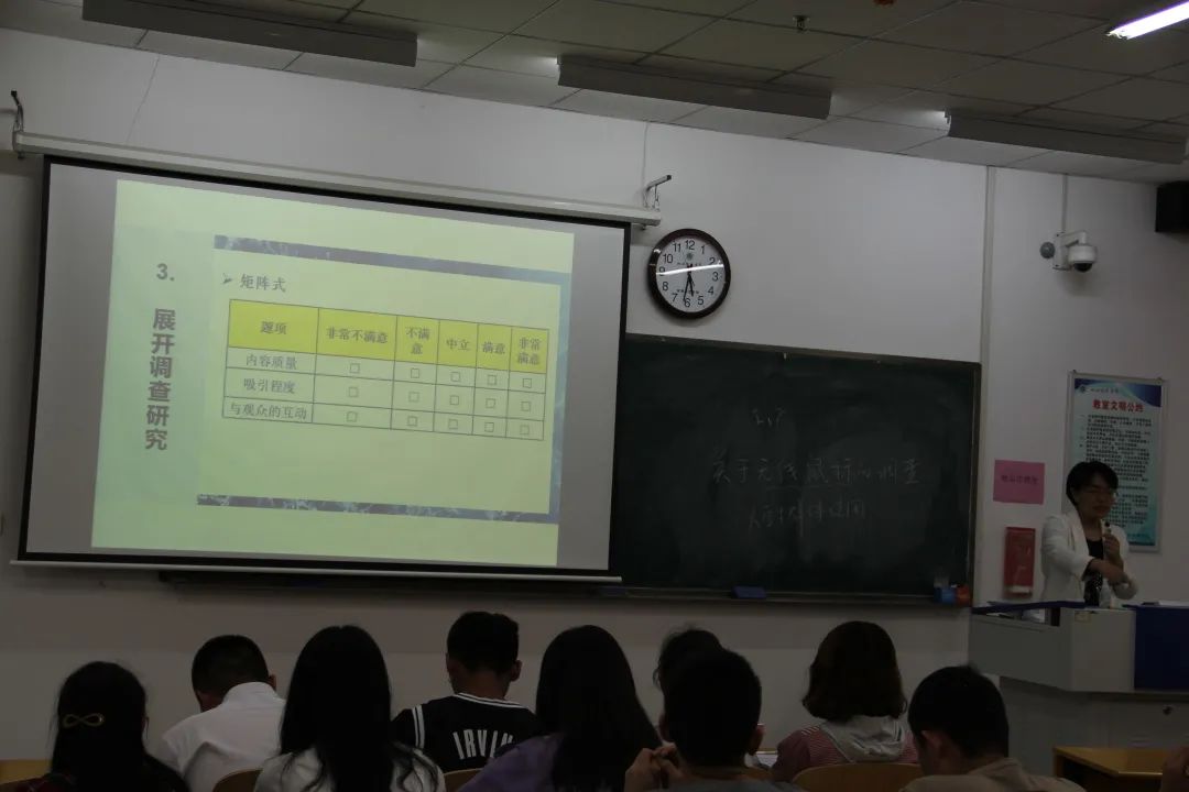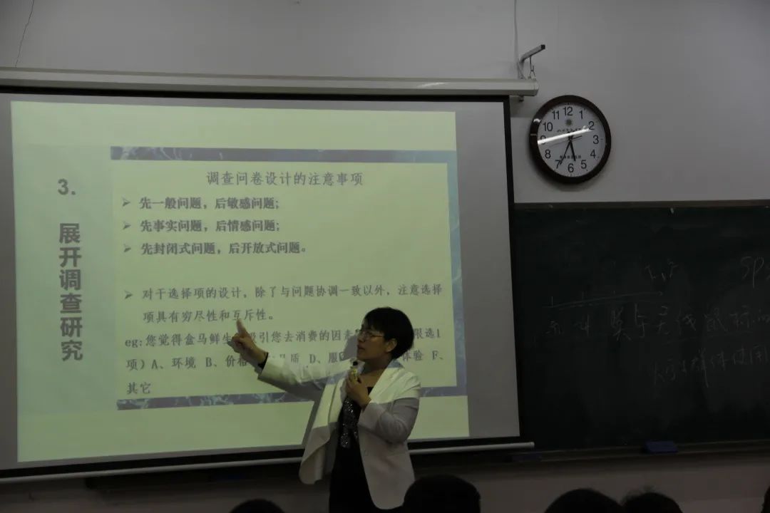 课堂期间,李捷老师通过大学生的消费调查报告这一实例,来说明调研工作中的细节问题。指出我们要明确调研问题的内容范围和广度,与此同时还要注意调查问卷的内容和格式种类。