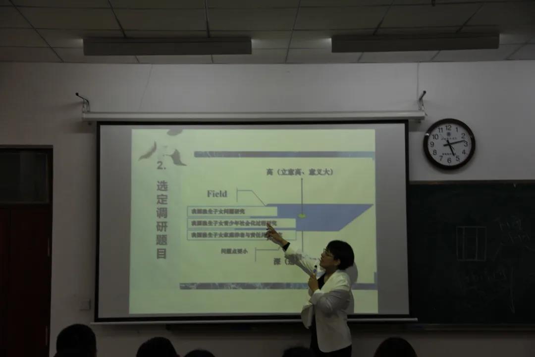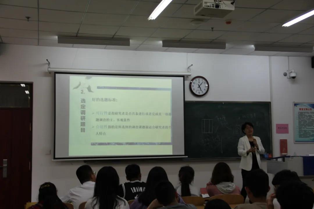 课堂上,李捷老师分析了“调研基本问题概述”、“如何选定调研题目”、“怎样展开调查研究”、“如何攥写调查报告”等问题,详细讲解了社会调研工作中所遇到的问题和注意的事项。
