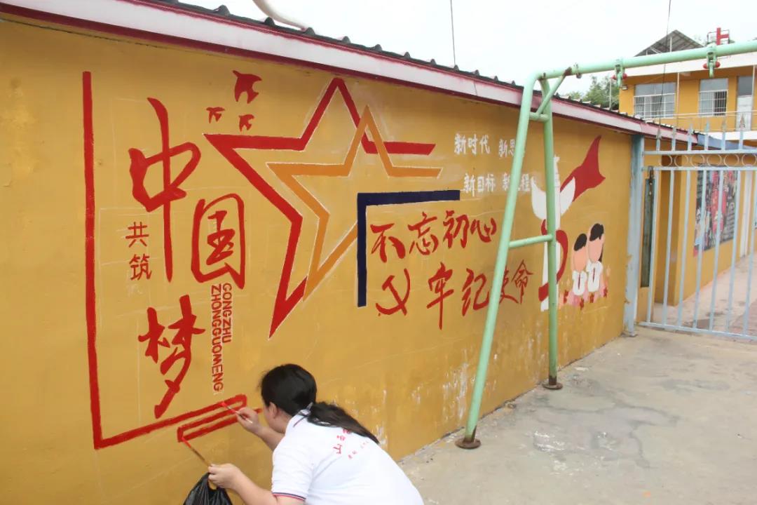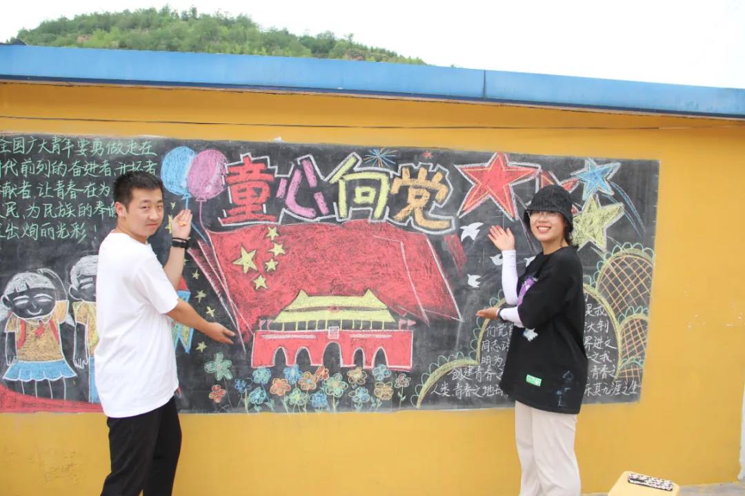 7月11日,实践队全体队员为上南沟小学进行板报设计,墙面美化等志愿服务。通过主题鲜明、创意新颖、图文并茂的标语等形式,勾勒出“美丽乡村,幸福校园”的蓝图。