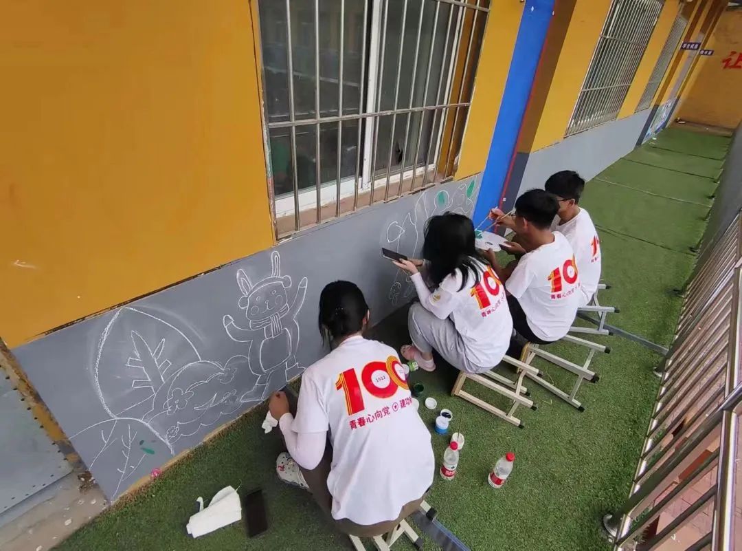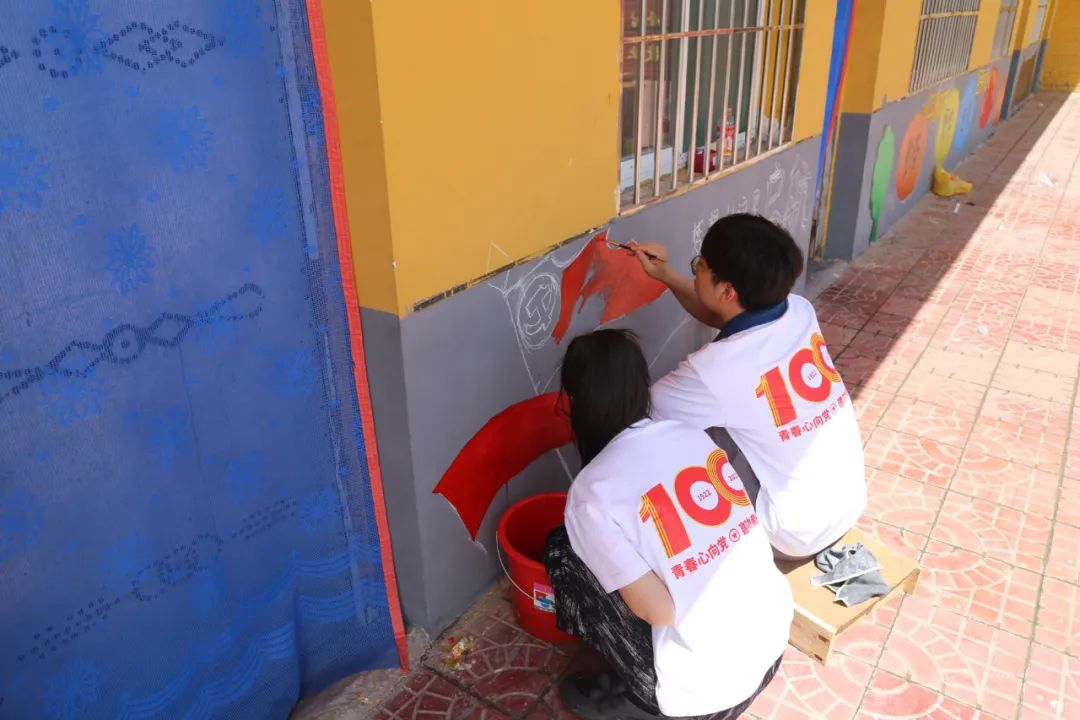 历时3天,经过实践队员们的不懈努力,顺利完成了所有墙绘制作。原本单调乏味、毫不起眼的墙面变得活泼富有生机,村民们纷纷称赞,用心绘制的墙绘获得了他们的一致好评。看着自己绘制的墙绘,给乡村振兴建设增添艺术色彩,队员们的成就感也油然而生。