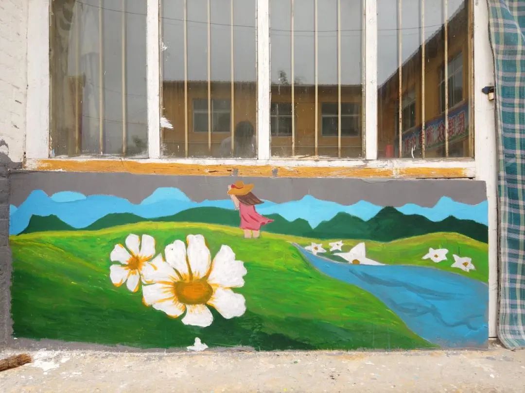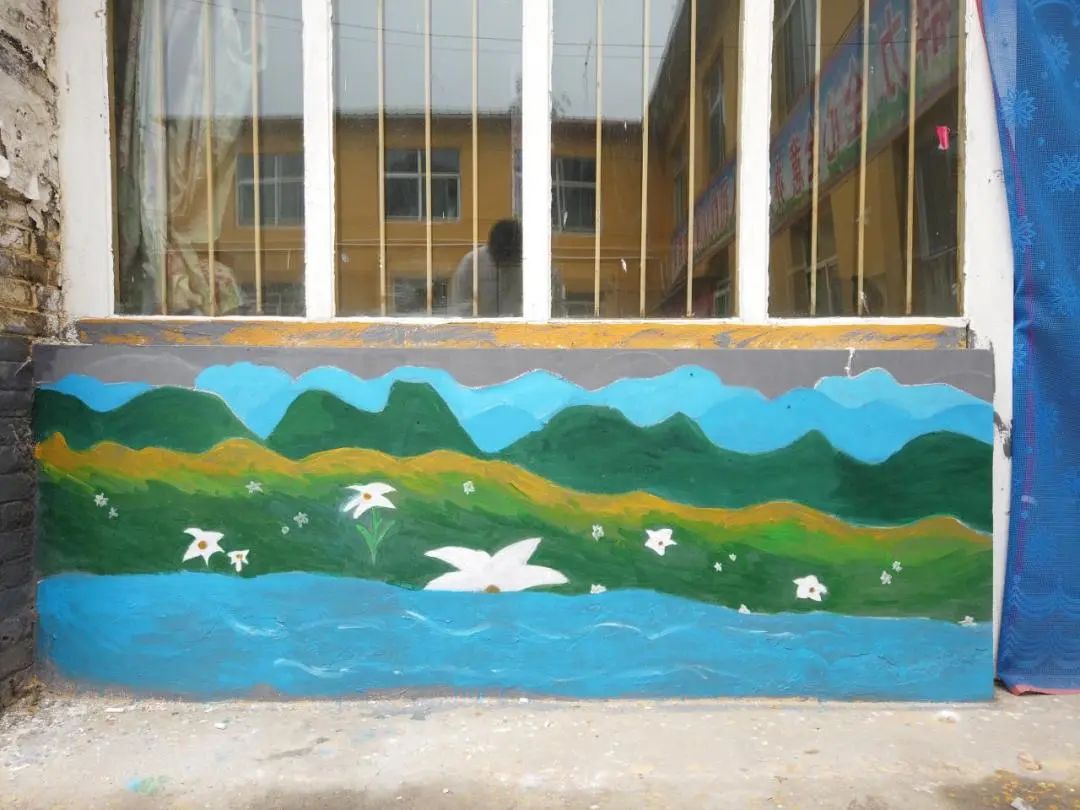 实践队员结合上南沟村环境与实际条件,有序开展墙壁美化活动。一幅墙绘作品的绘制需要一系列步骤,从确定墙绘主题、尺幅,到绘制边框、构图上色、调整细节,再到根据宣传需要添加文字标语,诸多流程不仅是对专业技能的检阅,也是对体能意志的考验。实践队员们两人或三人为一组,无惧烈日炎炎和。雨水冲打,抱着对绘画的热情与建设美丽乡村的憧憬,默契配合,精心设计,潜心创作,以颜料为载体,以画笔为工具,围绕乡村文化振兴主题,通过形象生动的墙绘作品,将绿水青山蓝天和田园美景绘入乡间,以丰富的文化内涵促进乡风文明建设。