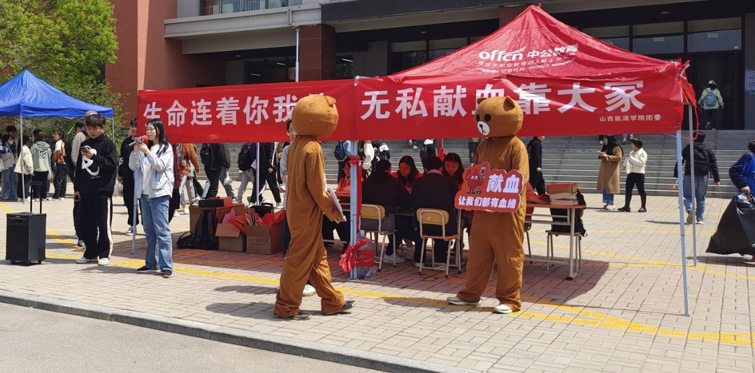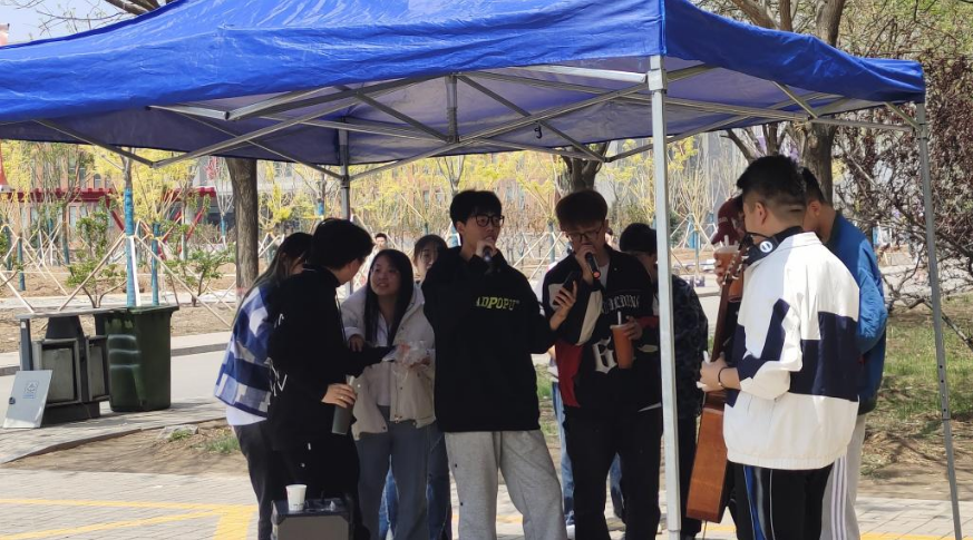 为了动员更多同学参与献血服务,太原市血液中心和校团委在餐厅西门举办唱歌活动,有奖知识问答。