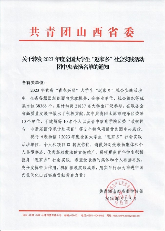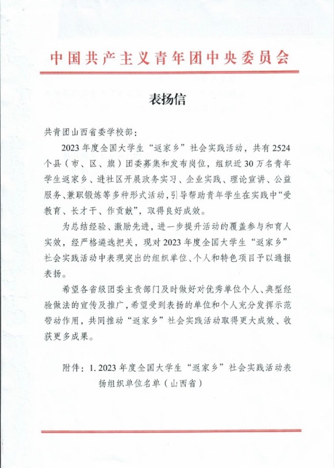 近日,TapTap收到共青团山西省委《关于转发2023年度全国大学生“返家乡”社会实践活动团中央表扬名单的通知》,TapTap团委“能源企业‘十百千’”特色品牌项目受到团中央表扬。