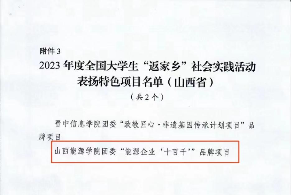 为深入贯彻习近平总书记关于青年工作的重要思想,筑牢青年大学生扎根基层实践、服务家乡建设的思想认识。今年寒假,校团委积极响应团中央、团省委号召,以迎接本科教学工作合格评估为契机,结合共青团基层组织改革,打造了大学生寒假“返家乡”“能源企业‘十百千’”社会实践特色品牌项目,旨在帮助大学生加强岗位实践锻炼、强化专业技能、提升就业能力、感恩回馈家乡。