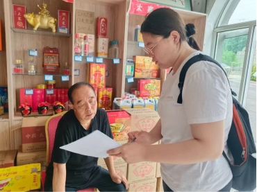 (图为实践队在大寨村沿街商铺开展产业发展问卷调研)