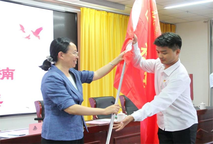 最后,党委副书记桑楠为暑期“三下乡”社会实践队代表授旗。