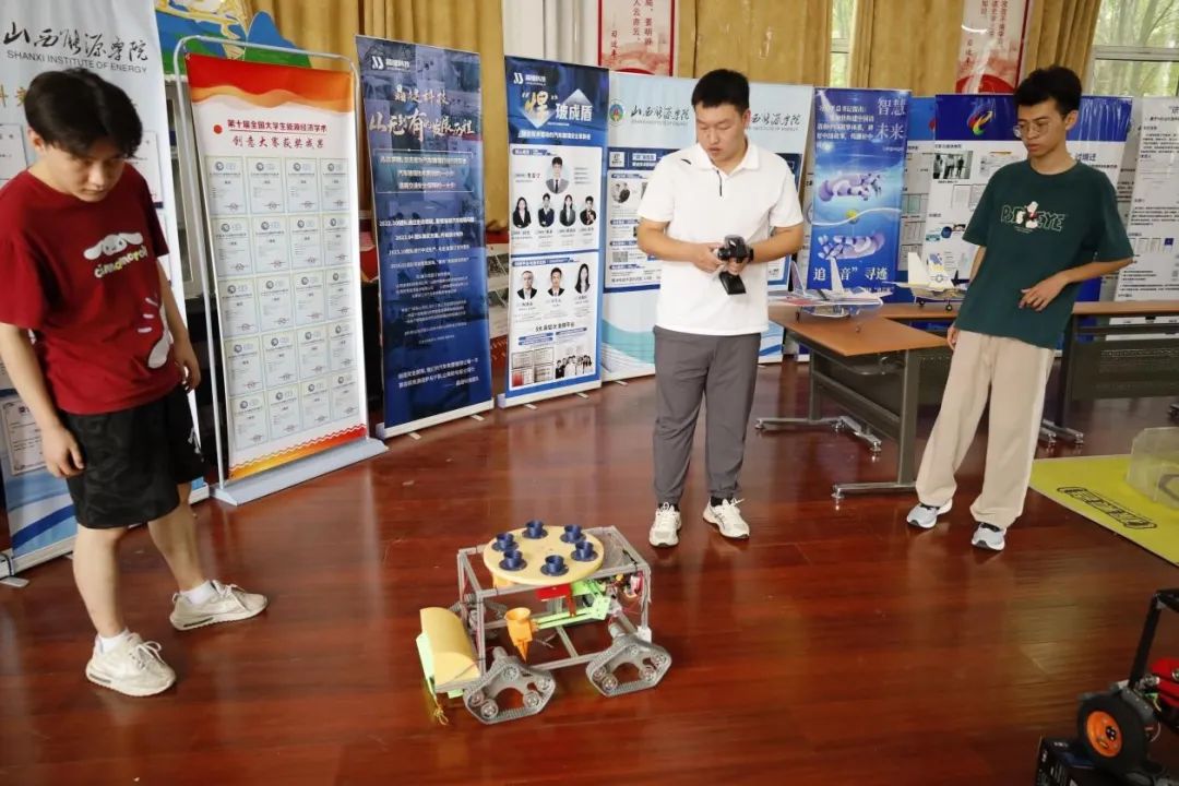 活动期间,各类展品涵盖了从能源科学的前沿探索到实践创新的丰富内容。参展的作品既有深入探究的创新项目,也有生动形象的科普宣传材料,充分展示了山能学子在科技创新、实验实践中的青春风采。能源机器人创新中心与电子协会的学生作品吸引了广大师生驻足观看,其展示的功能各异的机器人不仅体现了学生们扎实的专业知识,更展现了他们在科技创新领域的无限潜力。创新创业实践协会的展览则生动展现了山能学子在创业与实践中的独特思维与创新能力。此次活动不仅为学生提供了展示自我、交流学习的良好平台,也营造了浓厚的创新创业文化氛围。活动期间的科普宣传极大地激发了广大师生对科学知识的热情,增强了大家对能源创新的理解和兴趣。