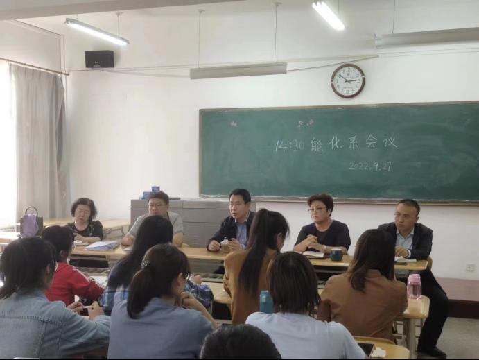 9月27日下午,党委副书记曲晋山深入我系调研指导工作。能源化学与材料工程系全体教师参会,党总支书记张凤主持会议。
