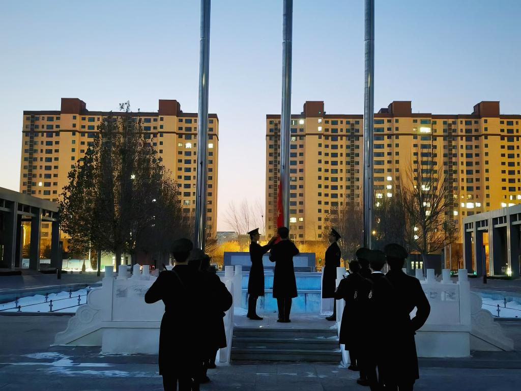 上午七时,升旗仪式正式启动。国旗护卫队队员身着整齐制服,迈着铿锵步伐走向国旗台。伴随雄壮的《义勇军进行曲》,五星红旗缓缓升起,全体师生肃立注目,高唱国歌,目光追随着国旗升至顶端,心中满含对祖国的热爱与对先烈的缅怀。