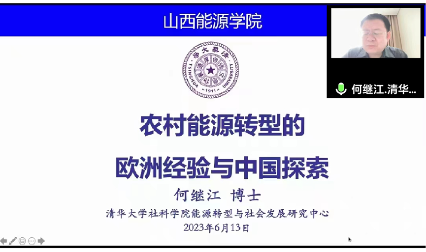 为拓展师生的学术视野,增强师生对学科专业前沿领域知识的深入了解与提升学术水平,6月13日上午,由科技产业部主办、能源化学与材料工程系承办的“能源大讲堂”系列学术讲座在线上举办。清华大学社会科学学院能源转型与社会发展研究中心副主任何继江,应邀作了题为“农村能源转型的欧洲经验与中国探索”的专题讲座,讲座由能源化学与材料工程系李永峰主任主持。