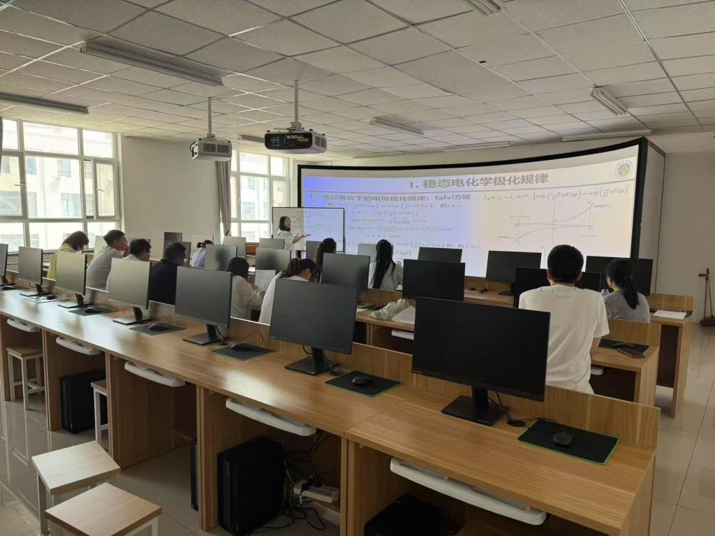 此次活动由刘晓晓老师与张慧欣老师分别进行主题讲授。刘晓晓老师围绕《电化学原理》展开授课,重点讲解了电化学领域中最重要、最基本的方程—Bulter-Volmer方程的推导过程,讨论了不同电位区间稳态电化学极化的规律,并将该规律应用到电解水析氢反应实际应用中,掌握其如何获得电化学动力学参数。她的讲解条理清晰,理论联系实际,结合典型实例引导学生理解抽象概念,充分展现了良好的教学素养与课堂驾驭能力。随后,张慧欣老师就《物理化学》中电解质溶液的导电机理进行了精彩讲解。她从电解质的导电过程讲起,层层递进,系统分析了离子迁移、电解池以及原电池导电规律等关键内容。张老师注重逻辑性与学生接受度,教学语言规范,教学方法灵活,展现了较强的专业基础与教学潜力。试讲结束后,各位教师围绕教学内容、授课方式、课堂互动等方面进行了深入交流与点评,肯定了两位老师的表现,同时也提出了针对性建议,以期不断提升教学效果。