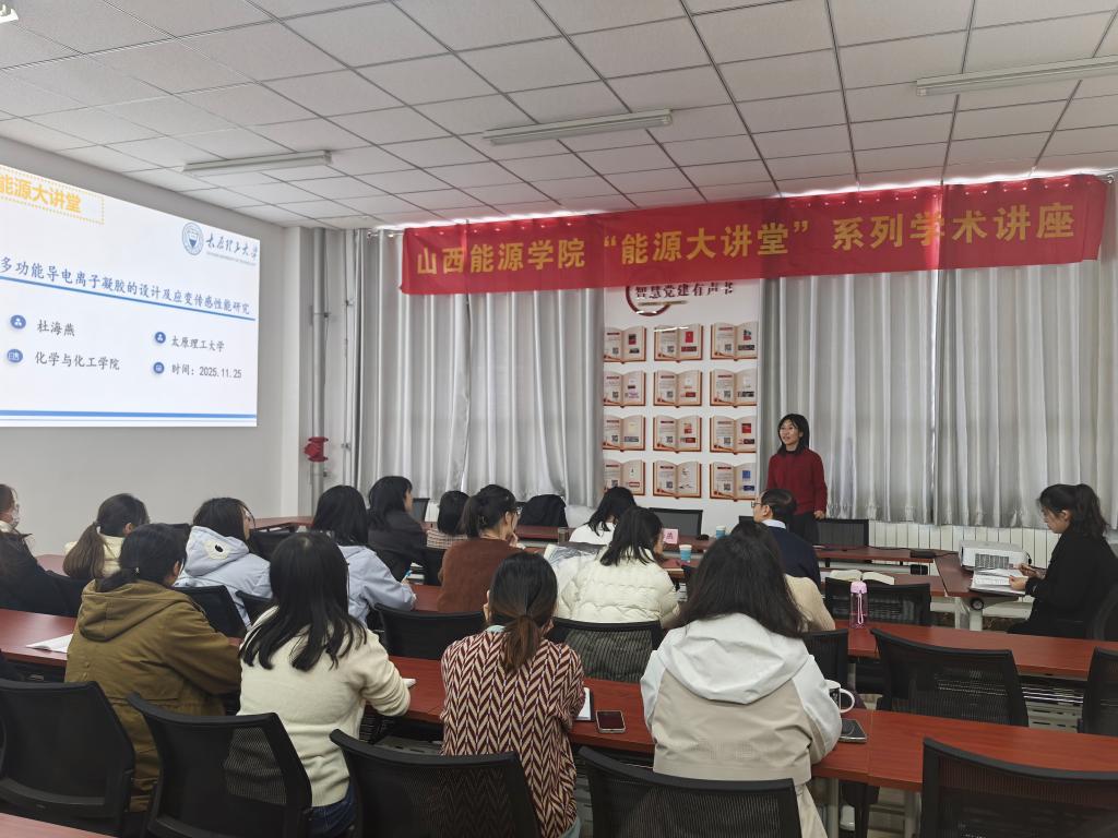 为营造浓厚学术氛围,拓宽师生科研视野,2025年11月25日,TapTap官网能源化学与材料工程系有幸邀请到太原理工大学杜海燕副教授,在强能楼一层2-101开展了一场题为“多功能导电离子凝胶的设计及应变传感性能研究”学术讲座。此次讲座吸引了众多师生参与,现场座无虚席,学术氛围热烈。