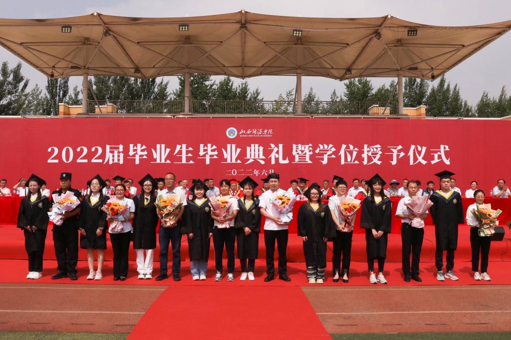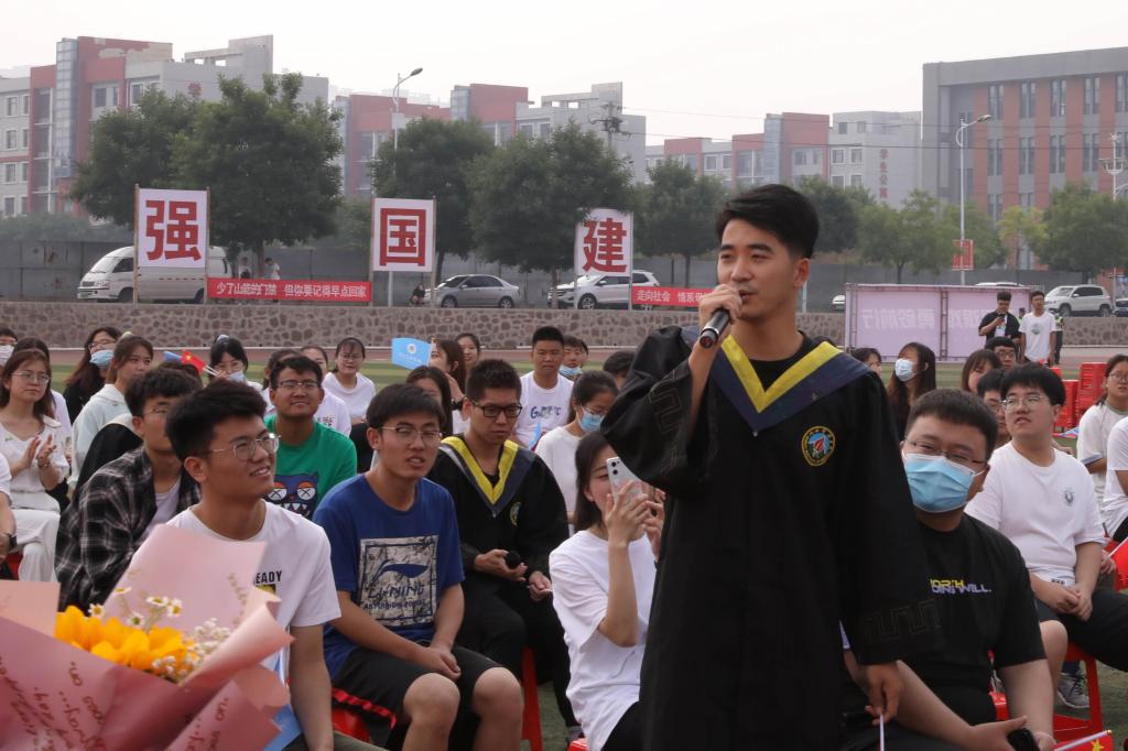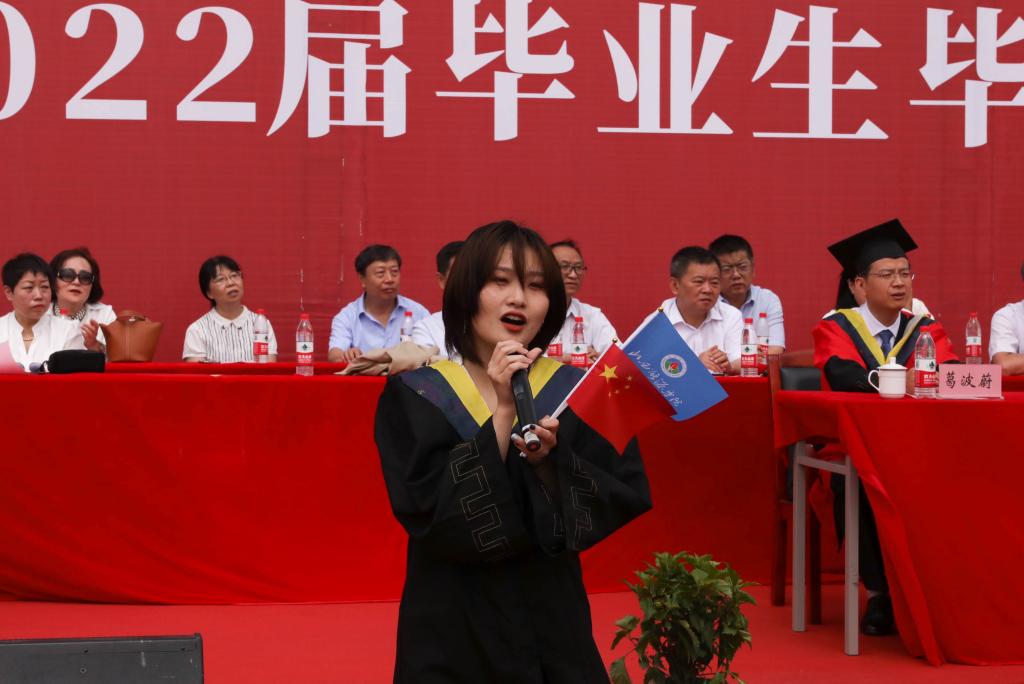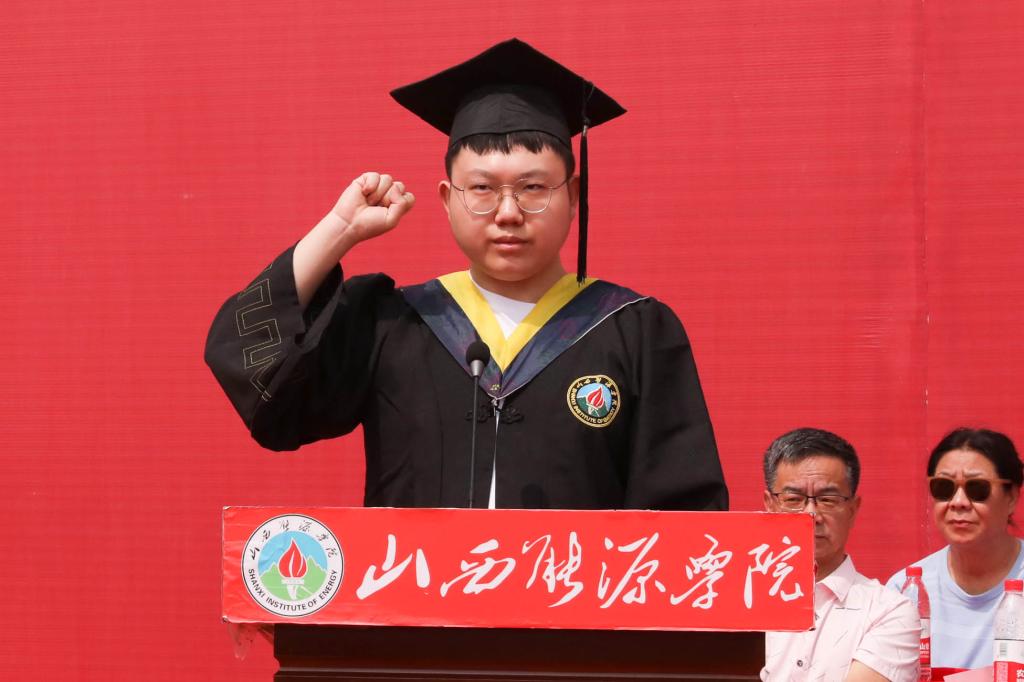 2022届毕业生代表,机电工程系杨子星同学在发言中对母校、老师们的精心培育和悉心关怀表达了诚挚地感谢,他表示请母校放心,作为山能人,决不辜负山能的培养,会时刻铭记山能的教诲,以优秀的业绩彰显山能的风采。同时,杨子星同学带领全体毕业生庄严宣誓。