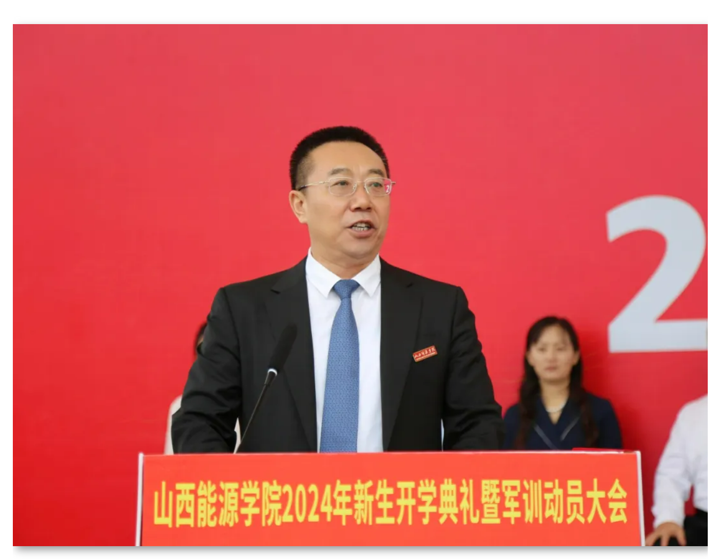 校党委书记冯锋,党委副书记、院长冯国瑞,党委副书记曲晋山,党委副书记桑楠,党委委员、纪委书记张志力,党委委员、副院长刘汉涛出席大会。大会特邀省军区办公室大校副主任梁敬修同志出席。各党政机关部门负责人,各系党政负责人、党总支副书记、2024级新生辅导员及全体2024级新生参加。大会由校党委副书记桑楠主持。