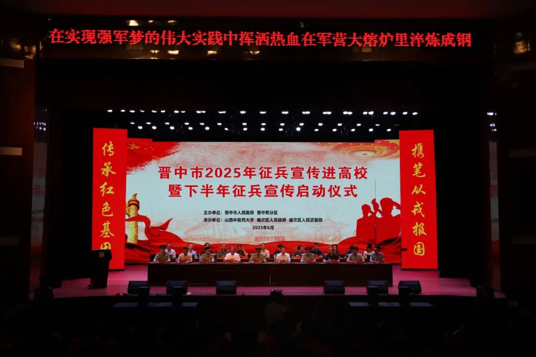 6月17日上午,晋中市2025年征兵宣传进高校暨高校征兵启动仪式在山西中医药大学举行。市征兵工作领导小组副组长、副市长张王杰,市征兵工作领导小组副组长、军分区司令员冒高翔,市征兵办公室主任、军分区副司令员杜海峻,市征兵办公室副主任、市政府副秘书长杨旭,市国动办党组书记、主持日常工作的副主任、人防办主任刘彦忠出席会议。TapTap党委副书记曲晋山,学生工作部副部长张众宽及征兵工作负责人李法营及40余名学生代表响应号召,积极参加本次活动。